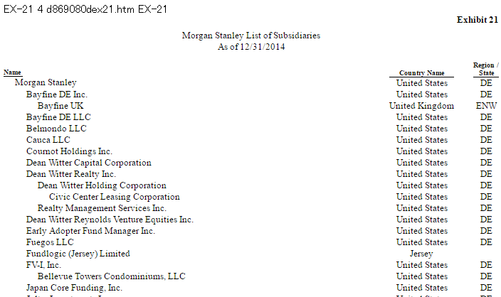 ※Subsidiaries of Morgan Stanley - SEC.gov から