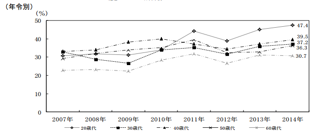 年代別にみると20代が47.4%となっており、半数近くが貯蓄無しです。