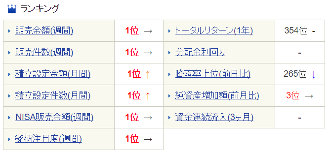 これはひふみプラスを販売しているSBI証券の投資信託ランキング(2017年3月9日時点)です。販売に関する指標は全てナンバー1です。しかも,週間ランキング(2/27-3/3)は横ばいで1位ですから前週も1位だったことになります。圧倒的です。