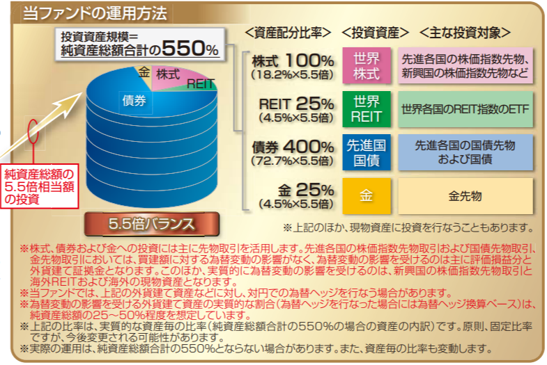 ファンドの運用としては3倍3分法よりもヤバイのが「グローバル5.5倍バランスファンド」です。3倍3分法で成功した日興が2匹目のドジョウを狙って,さらにレバレッジを強化したファンドをこの2月12日に設定しました。