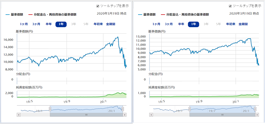 このファンドも値上がりしだしてから資金が集まり,値下がりした3月19日時点でも2,870億円の資金を集めています。多くの投資家がかなりの含み損を抱えている可能性がありますが,どうなるでしょうか?