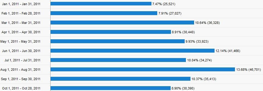 9月は10万PVを切りましたが、だいたいは毎月10万ちょっとというアクセスのようです。